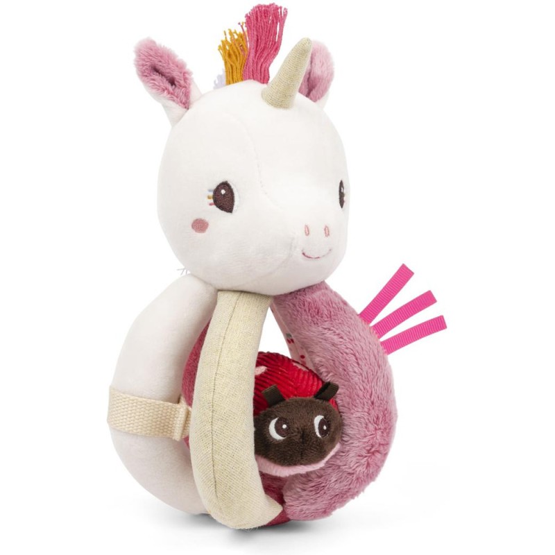 Bientôt disponible, rendez-vous le 16 septembre ! Lena la licorne et son amie la coccinelle sont inséparables ! Avec ce gros hochet à poignées, bébé s'éveille en douceur dès l'âge de 6 mois. Pour cela, il dispose de 4 activités sensorielles pour se divertir en bonne compagnie. D'abord, un hochet à faire tinter encore et encore dans la tête de Lena la licorne, idéal pour éveiller aux sons.