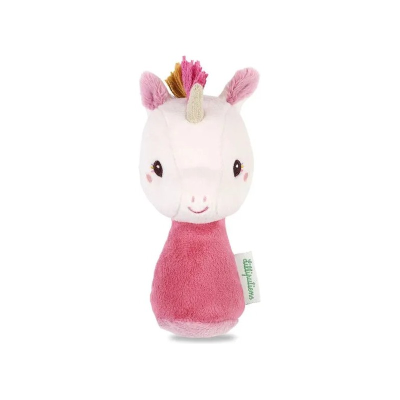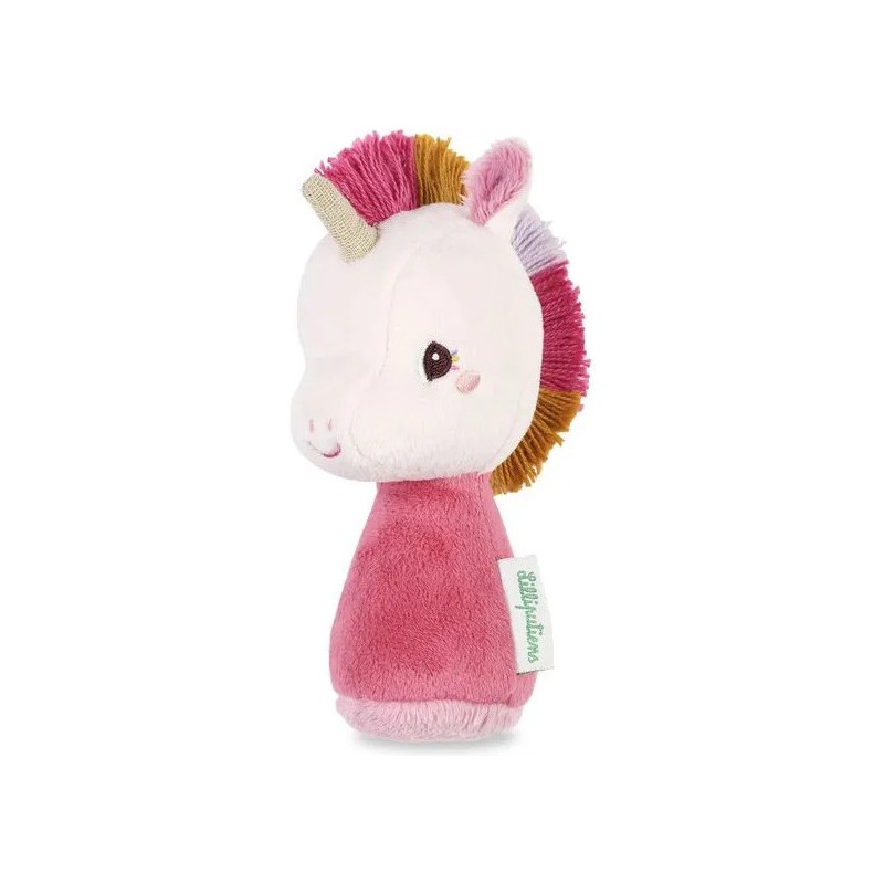 Secouez Lena pour révéler son pouvoir sonore ! À l’endroit, à l’envers… et la magie opère ! Avec ce hochet Piou tout doux, il devient facile de divertir bébé à tout moment, dès l'âge de 3 mois. Pour le faire retentir, rien de plus simple : secouez-le ou tournez-le… et hop, un bruit “piou” retentit ! Un son rigolo tout droit sorti de la forêt enchantée ! Comptez sur Lena la licorne pour embarquer bébé dans son monde magique et l'occuper pendant de longs moments de jeu ! En agitant ce hochet sonore devant les yeux de votre bambin, vous développez son acuité visuelle et son ouïe. Pendant les temps de jeu de bébé, ce jouet d'éveil est aussi l'idéal pour attirer son attention et susciter sa curiosité. Impossible de résister au charme de notre amie Lena ! Avec sa belle crinière colorée, sa corne scintillante et ses couleurs douces, elle attire immédiatement les câlins. Les petits ne résistent pas à l'envie de caresser sa chevelure de licorne. Et quand bébé commence à saisir le hochet et à le faire retentir, il stimule alors sa préhension et sa réflexion. Ce petit jeu aide aussi bébé à comprendre que ses gestes ont un impact : une première initiation au lien de cause à effet, tout en s’amusant. Avec ses proportions de 5 x 6 x 15 cm, ce hochet est super simple à prendre en main par les petits. Composé de polyester, ce jouet d'éveil Lilliputiens est lavable à la main pour un entretien facile. Et maintenant… piou !