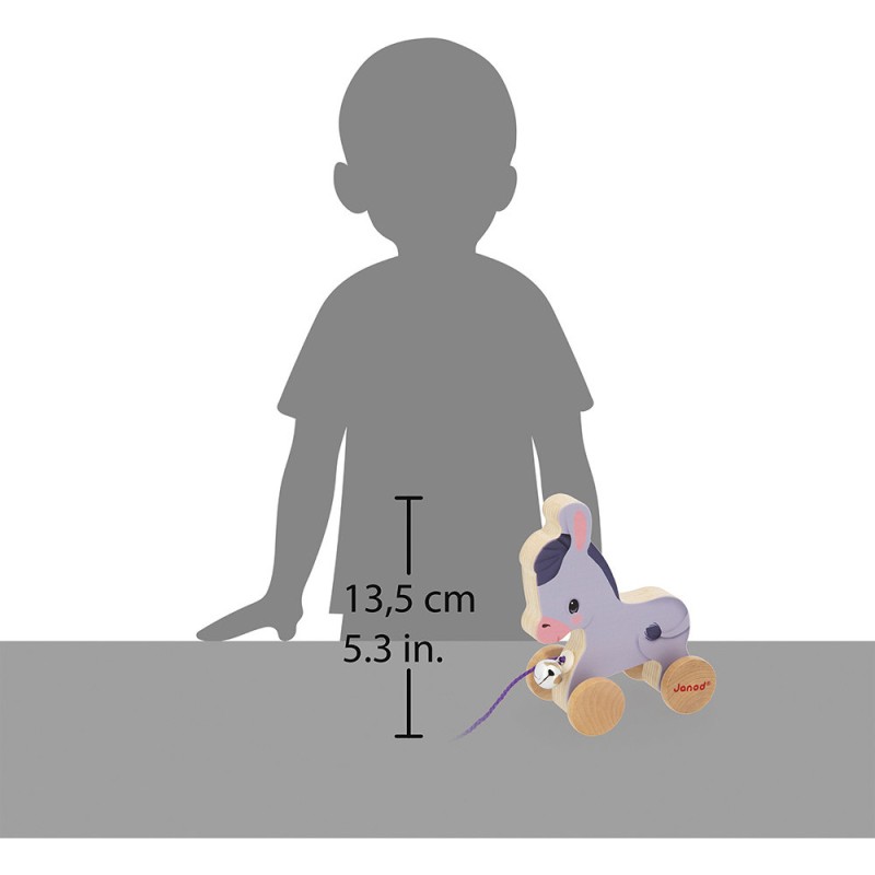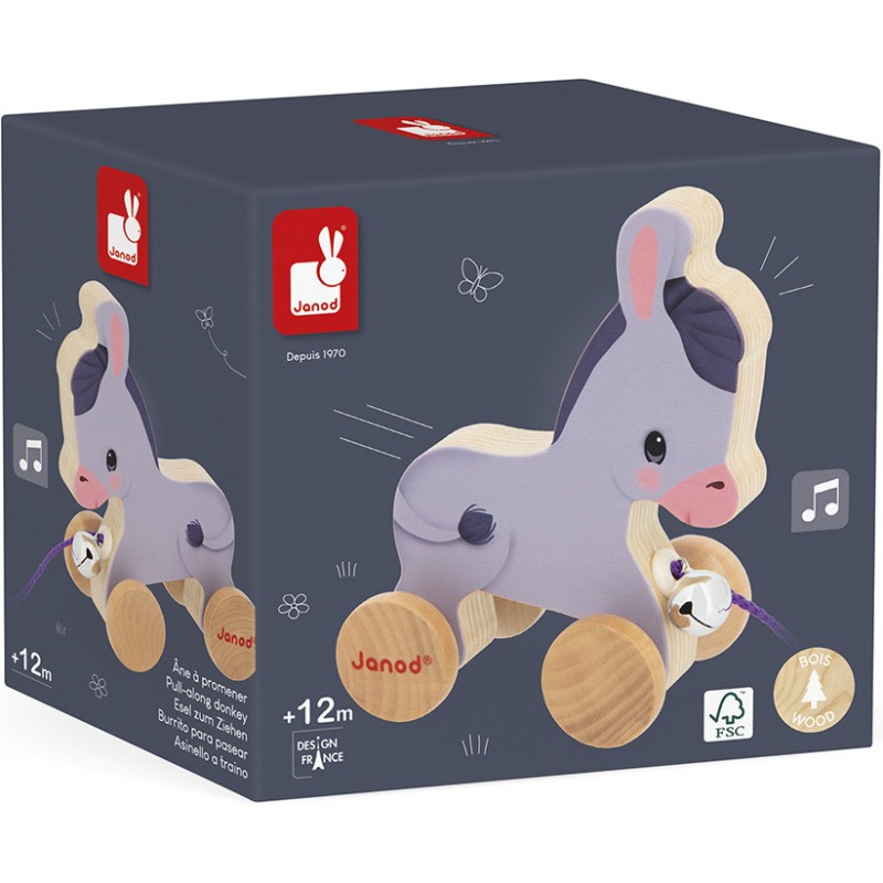 C’est un jouet d’éveil parfait pour stimuler la motricité en douceur, qui invite toute la famille à une balade champêtre à la ferme. Avec sa jolie clochette à l’avant, ce petit âne en bois tintera joyeusement en roulant. Un petit âne est généralement curieux et joueur, mais aussi tenace et patient … Des points communs avec votre bambin, peut-être ?