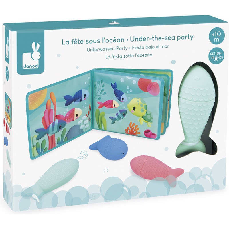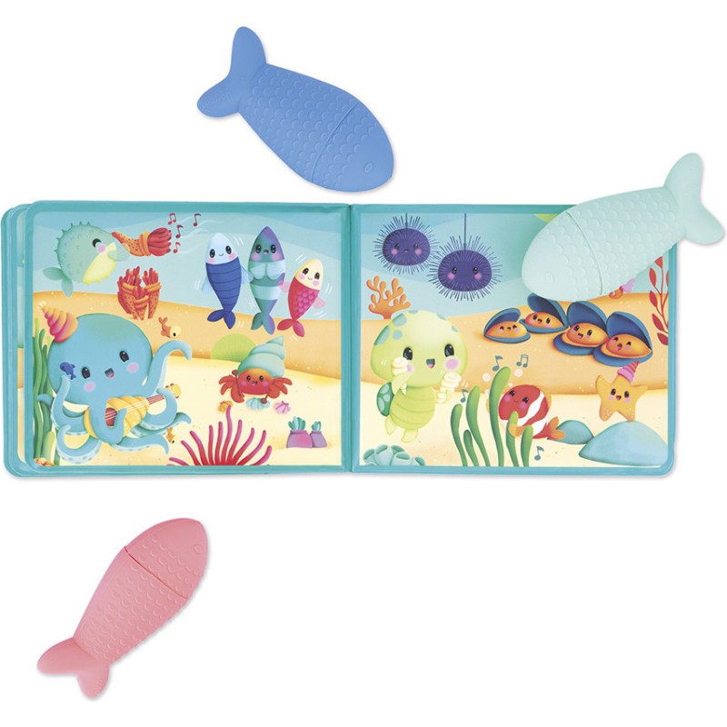 Faites du bain un moment festif ! Avec ce livre de bain et ces gicleurs, les enfants dès 10 mois et même les plus grands se divertissent à l’heure de se laver. Composé d’un livre « La fête sous l’océan » et de 3 gicleurs poissons, ce jouet de bain stimule l’imagination et la motricité fine des petits.