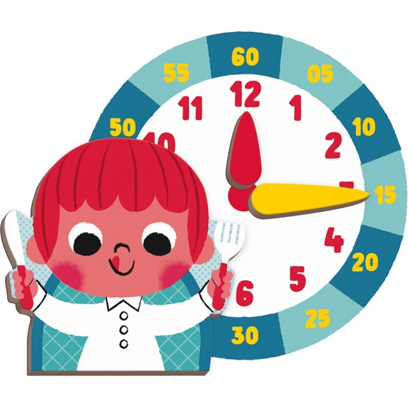 Le principe est simple : recomposer la scène du quotidien indiquée sur la carte et y associer une heure. A quelle heure je prends mon petit déjeuner ? Quelle est l'heure de la sieste ? ... avec les 75 magnets et les 8 cartes modèles recto-verso incluses, 16 scènes de la vie quotidienne sont à reproduire !