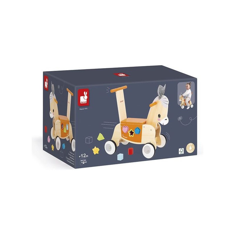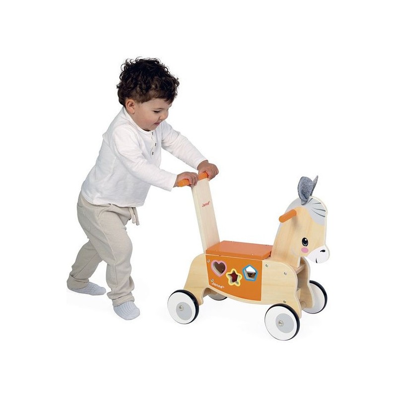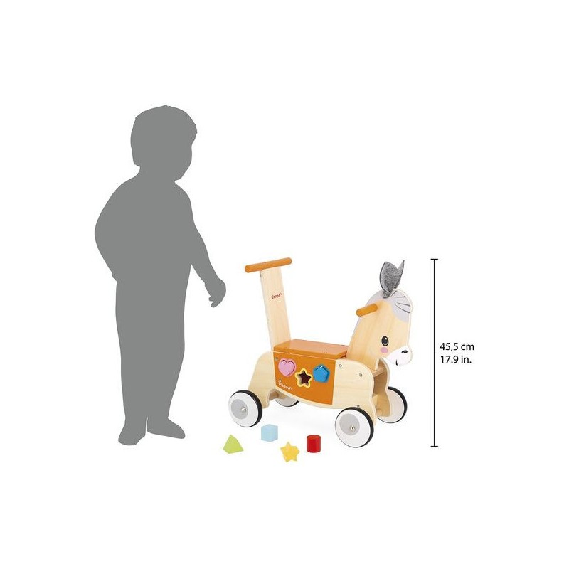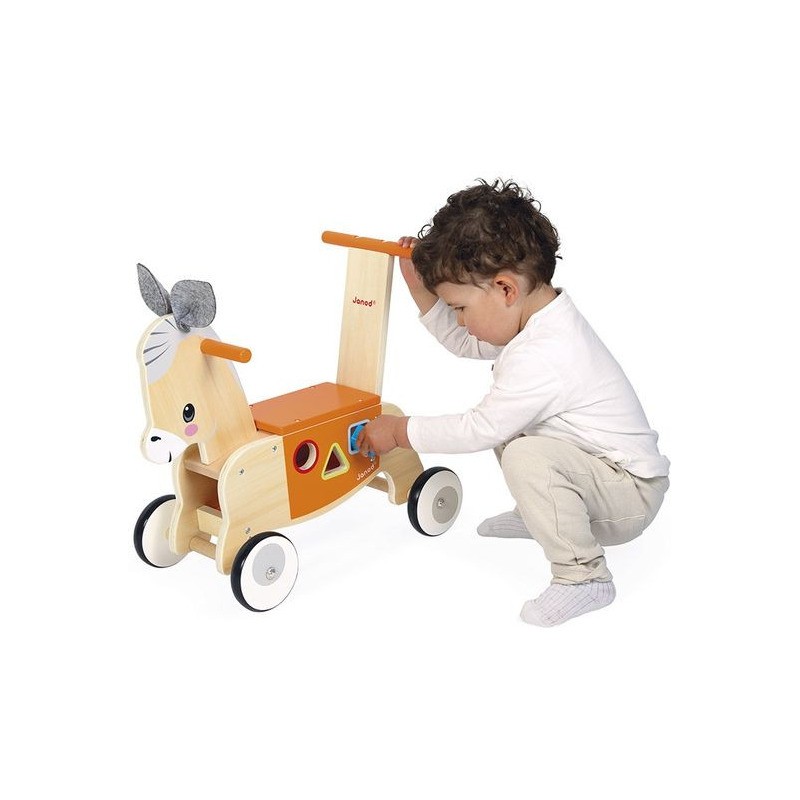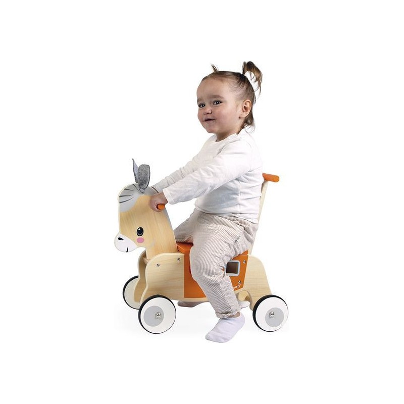 Petit âne a vraiment hâte de découvrir le monde, et bébé aussi ! Avec ce porteur âne en bois, en route pour de nouvelles aventures, dès 12 mois.