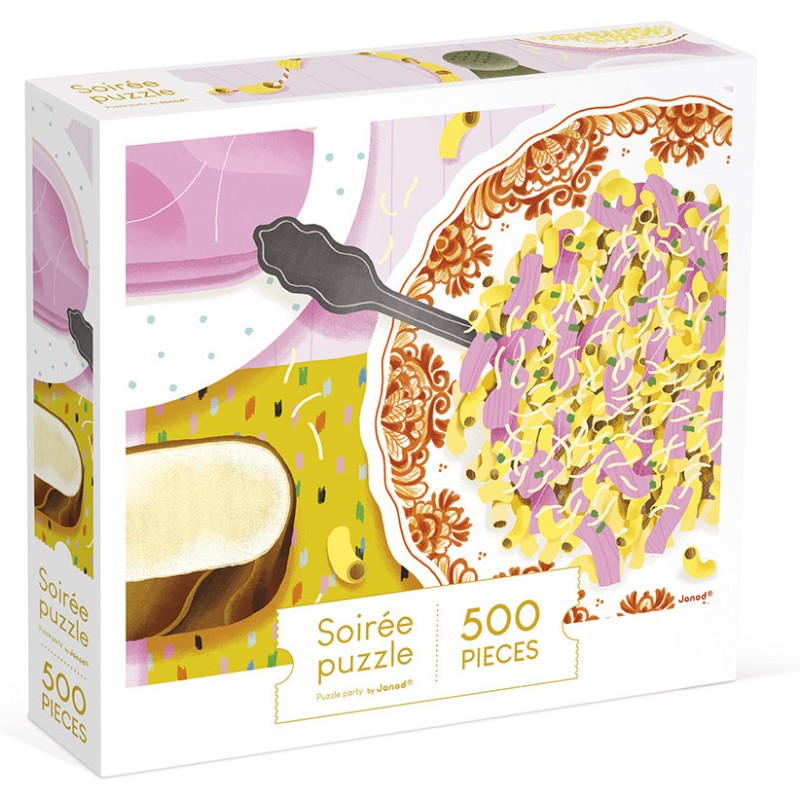 Et si on replongeait en enfance ? Ce puzzle de 500 pièces représente une véritable madeleine de Proust, un plat réconfortant et très populaire en France : les coquillettes jambon ! Une combinaison d’ingrédients crémeux et savoureux, un plat rapide et facile à préparer, tant aimé des petits … Idéal pour les enfants à partir de 8 ans, et pour toute la famille, ce puzzle ayant pour thème ce plat synonyme de souvenirs d’enfance vous invite à la gourmandise et à la détente.