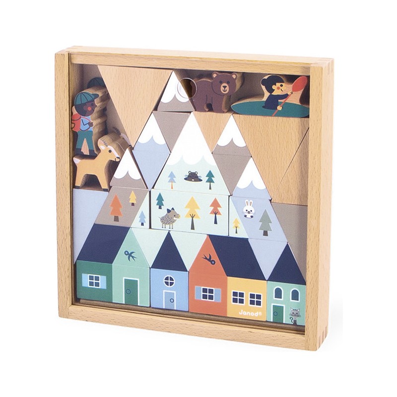 Set de 35 cubes en bois Vallée blanche - Cross Roads - Janod