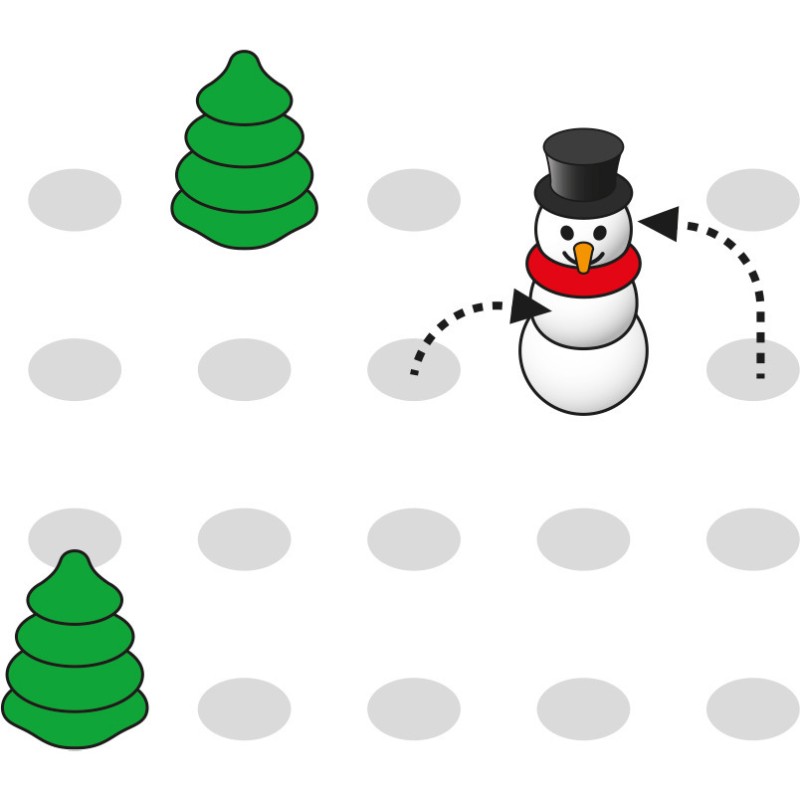 - Étape 1 Placez les sapins et les boules de neige comme indiqué dans le défi.