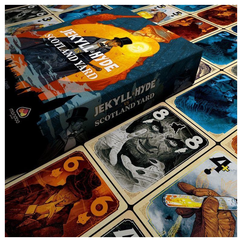 Jekyll & Hyde vs Scotland Yard est un jeu de plis coopératif pour 2 personnes. Vous y incarnez le docteur Jekyll, mais aussi l'infâme Mr.Hyde, traqué par Scotland Yard. Votre objectif est de maintenir l'équilibre entre vos deux personnalités, tout en gardant une longueur d'avance sur Scotland Yard.