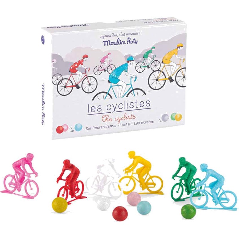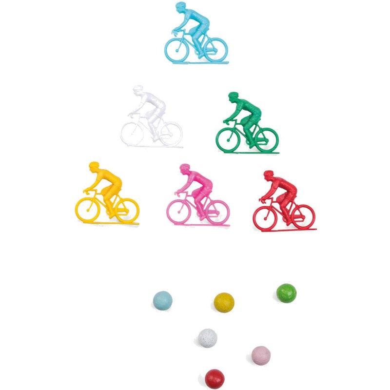 Tracer un circuit, placer votre cycliste sur la ligne de départ, lancer la bille assortie et poser le cycliste où la bille s'arrête. Jouer à tour de rôle, le gagnant est le premier sur la ligne d'arrivée. Jeu conçu et fabriqué en FranceDriiiiing !!! La cloche a sonné, l’école est finie !