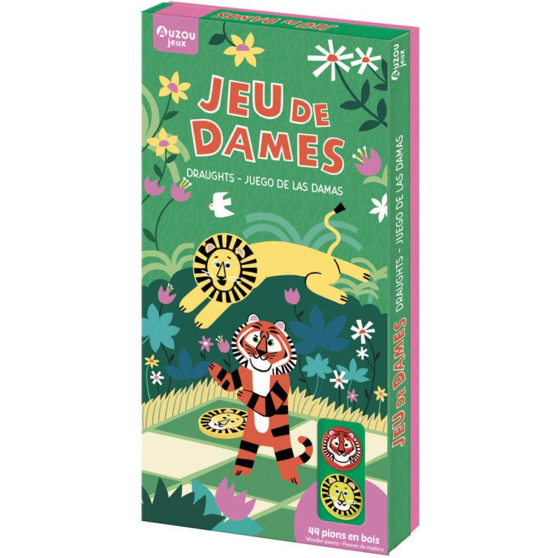 Retrouvez un grand classique chez Auzou : Le jeu des dames – le duel des félins ! Découvrez ce jeu mondialement connu revisité sous les pinceaux de Jessica Das. Le plateau recto-verso offre deux niveaux de jeu pour s'initier dès 5 ans. Alors, entre le lion et le tigre, qui l’emportera ?