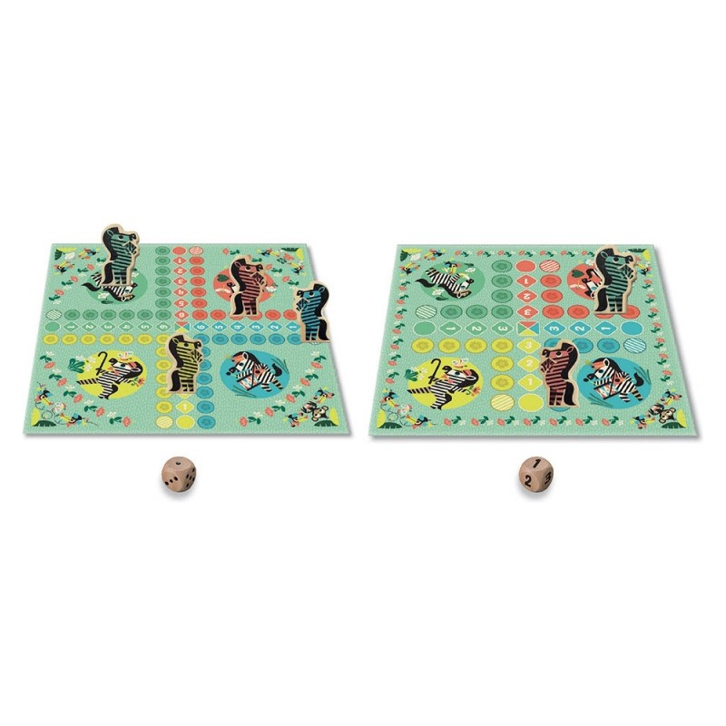 Retrouvez un grand classique chez Auzou : le jeu des petits chevaux mais cette fois-ci dans la savane ! Découvrez ce jeu mondialement connu revisité sous les pinceaux de Amy Blay, et soyez le premier à faire arriver vos zèbres au bout du parcours. En plus de ses 16 beaux pions et ses dés en bois rangés dans un superbe sac en toile, le plateau de jeu recto-verso permet d’avoir deux niveaux !Le jeu classique et aussi un niveau plus facile avec moins de cases, un dé adapté pour des parties plus rapide accessible à partir de 3 ans !