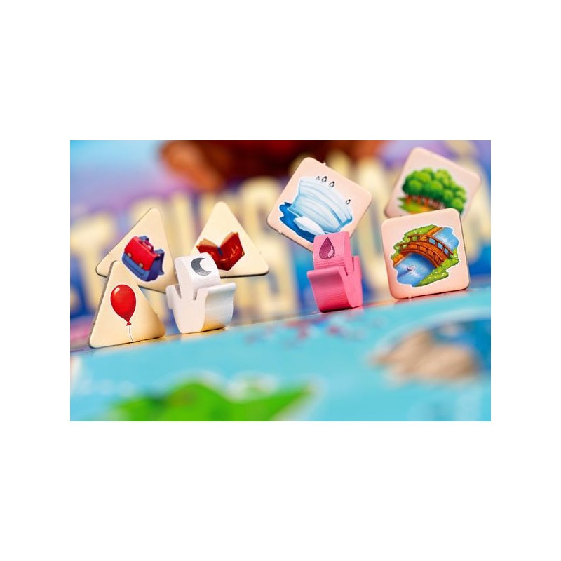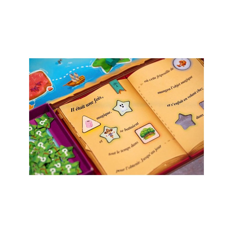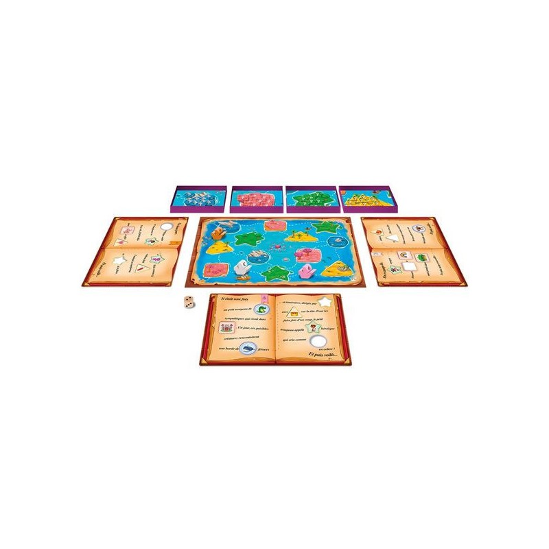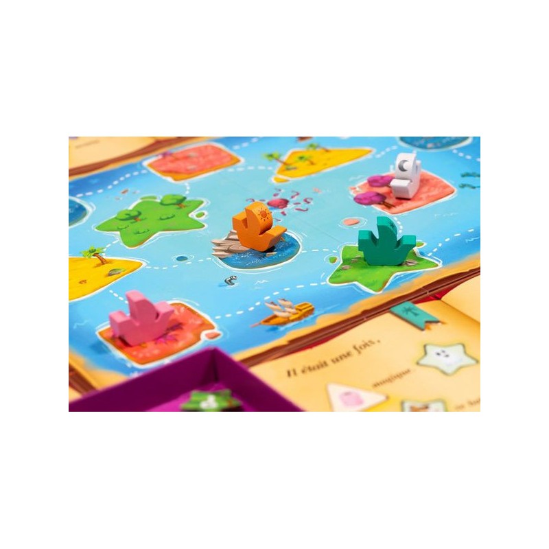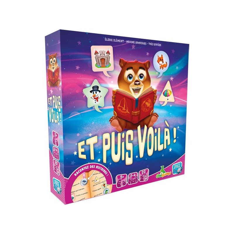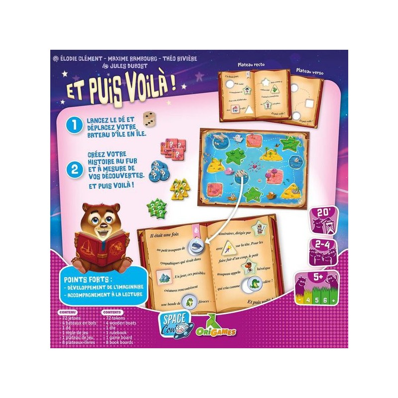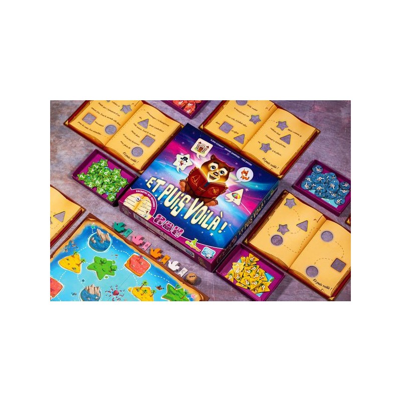 Dans Et puis Voilà !, les jeunes joueuses et joueurs sont invités à créer leur propre histoire. Leur plateau de jeu comporte une histoire avec des trous de formes différentes. Déplacez votre bateau d’île en île avec votre dé. La forme de l’île atteinte vous indique quelle forme de jeton piocher. Bouchez un trou de la même forme avec votre jeton et complétez votre histoire !