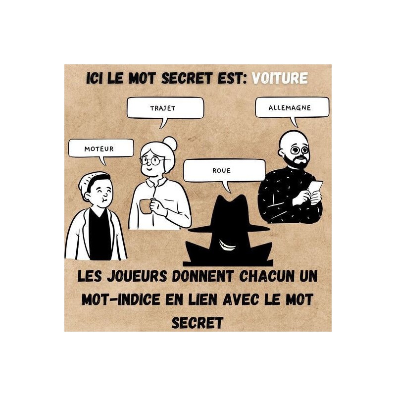 - À chaque tour, chaque joueur connaît un mot secret, à l'exception de l'imposteur. A tour de rôle, chaque joueur va partager un mot-indice en rapport avec le mot secret.