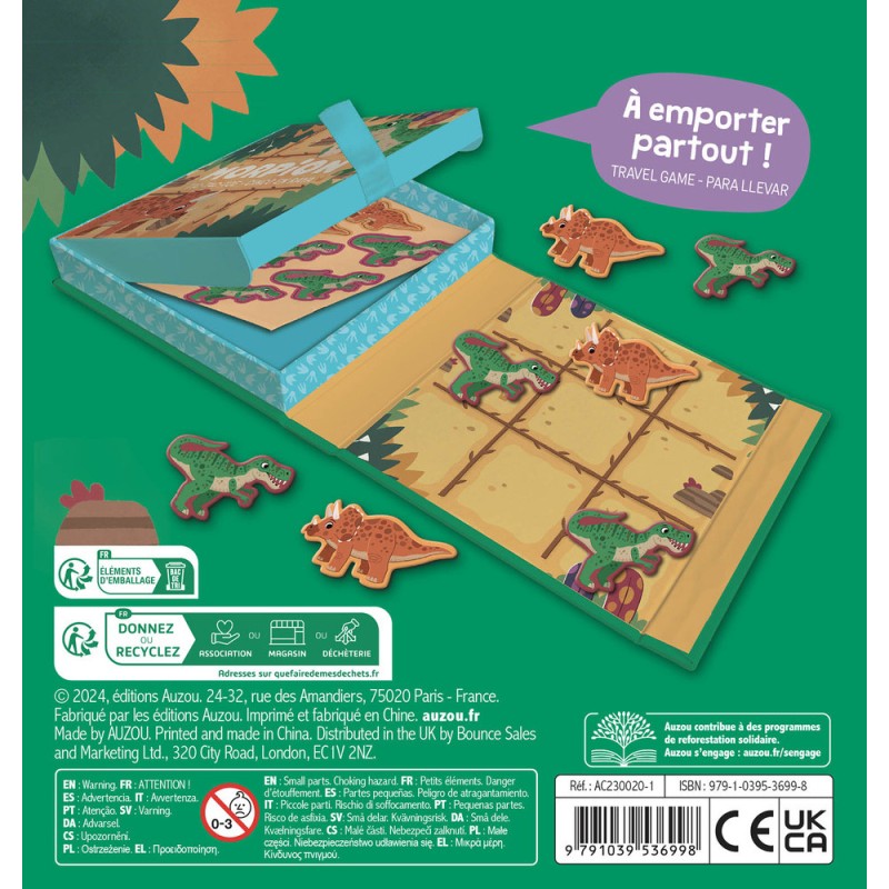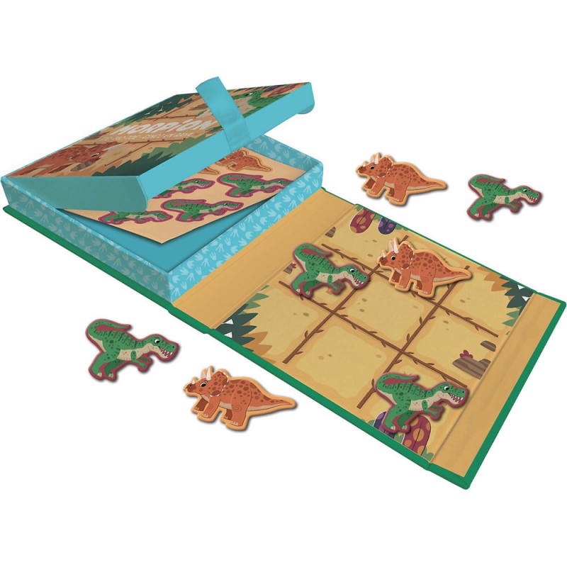 Un p'tit jeu magnétique facile à transporter ! Avec son plateau magnétique ne perds plus aucune pièce et joue partout ! Défit tes amis ou ta famille dans ce morpion magnétique sur le thème des dinosaures !
