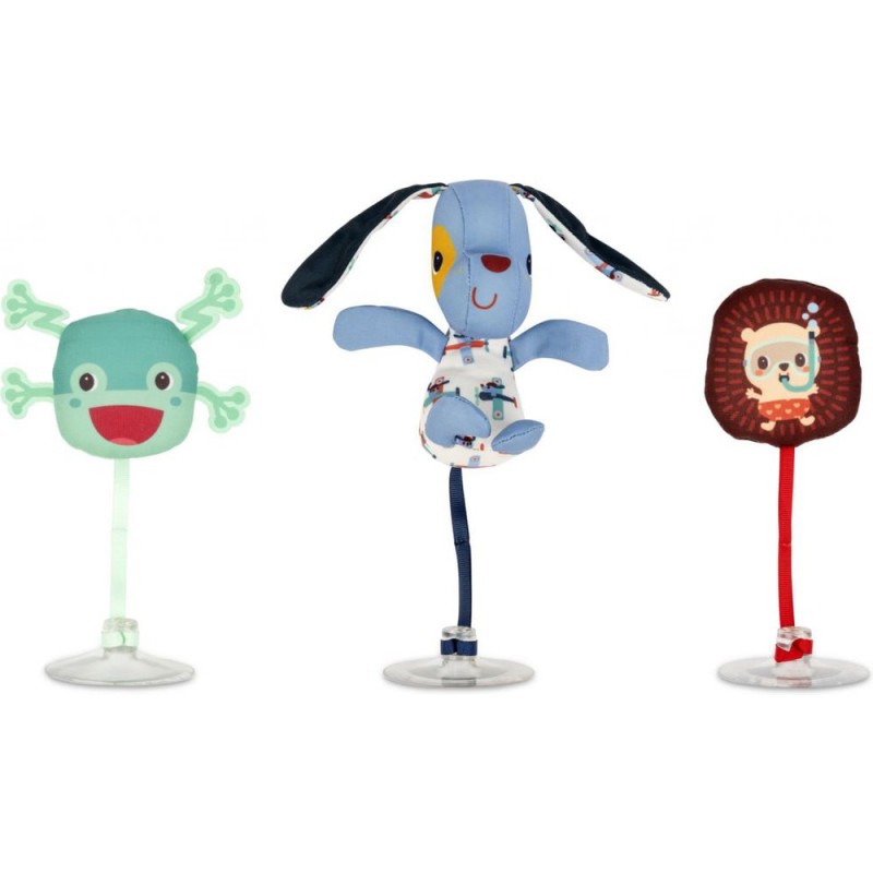 Disponible en mars sur l'eshop - Jules et ses amis adorent prendre le bain avec bébé ! Grâce à leur ventouse, vous les fixez facilement sur la paroi de la douche ou au fond de la baignoire. Jules le chien, Leon le hérisson et la grenouille seront toujours à portée de main de bébé.