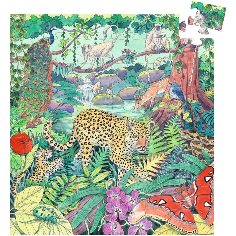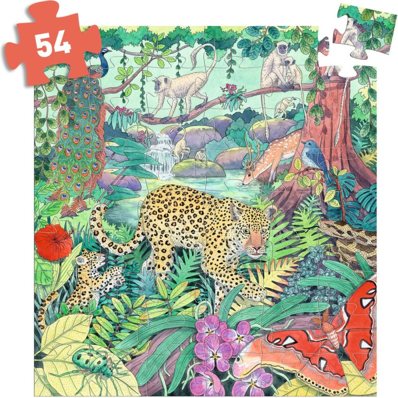 Plongez au cœur de la jungle indienne et découvrez un monde vibrant d’animaux, de couleurs et de fleurs magnifiques. Ce puzzle coloré de 54 pièces est présenté dans une jolie boîte silhouette en forme d'arbre.
