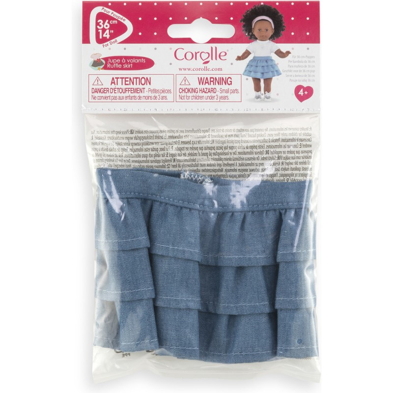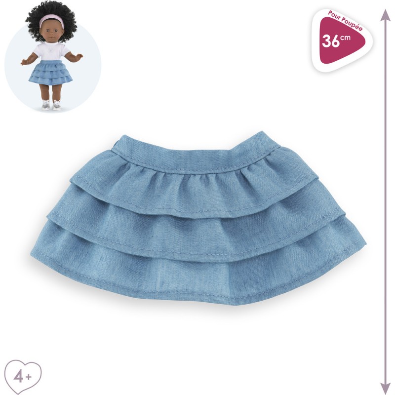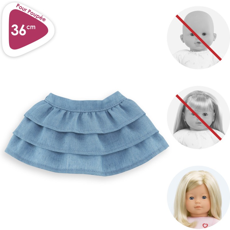 La jupe à volants pour poupée ma Corolle de 36 cm est un vêtement à la fois tendance et décontracté, à porter toute l'année. Confectionnée dans des matières douces et résistantes, elle est facile à enfiler. Cette jolie jupe en denim bleu est composée de plusieurs volants.