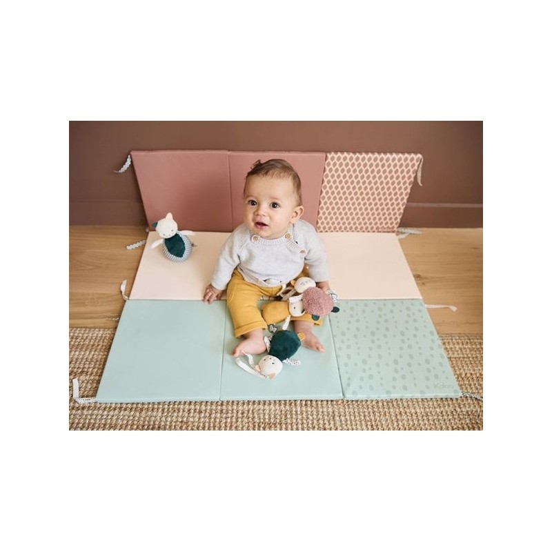 Cet ensemble fait partie de la collection Kaloo Stimuli, créée en collaboration avec des psychomotriciens pour aider le bébé à développer ses capacités sensori-motrices dès la naissance.