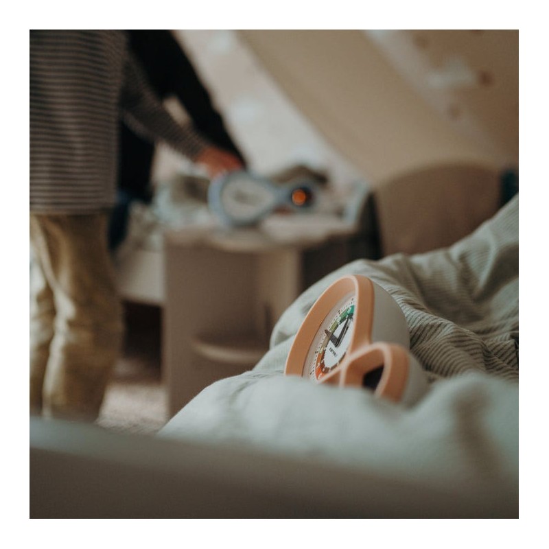 Pratique: Le Kidyalarm reste branché via Usb-C, éliminant le besoin de piles et offrant une alarme réglable avec fonction snooze.