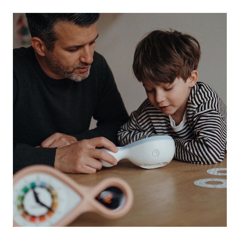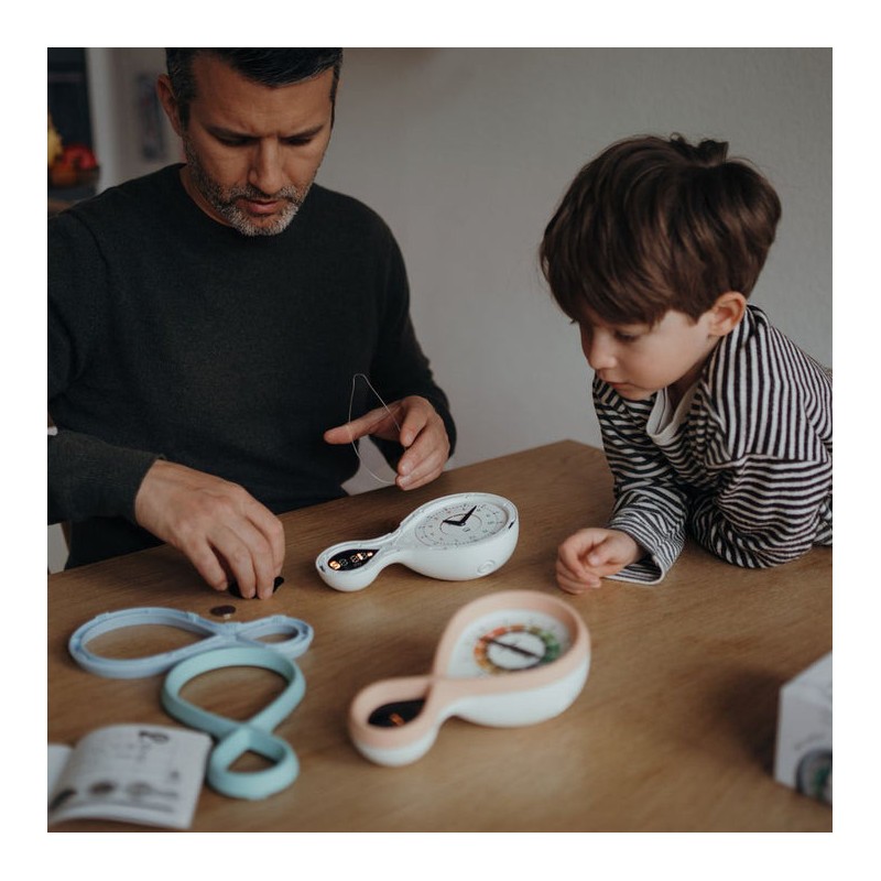 Kidyalarm est bien plus qu’un simple réveil : c'est un outil éducatif conçu pour aider les enfants à apprendre à lire l’heure de manière progressive. Avec son affichage digital et ses trois cadrans analogiques interchangeables, ce réveil évolutif s’adapte à l’âge et aux compétences de votre enfant, passant d’un cadran coloré pour les jeunes enfants à un affichage classique pour les plus âgés. Sa forme en figure de l'infini et son affichage lumineux dans l’obscurité en font un ajout attrayant et pratique à toute chambre d’enfant.