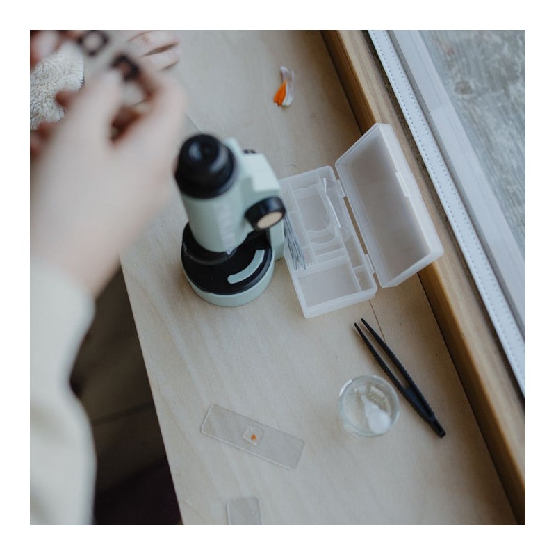 Le Kidymicroscope propose deux modes d’éclairage : direct et transmis. La lumière directe est idéale pour observer des échantillons solides, tandis que la lumière transmise permet d’examiner des objets transparents ou fins, offrant une qualité visuelle optimale pour chaque découverte.