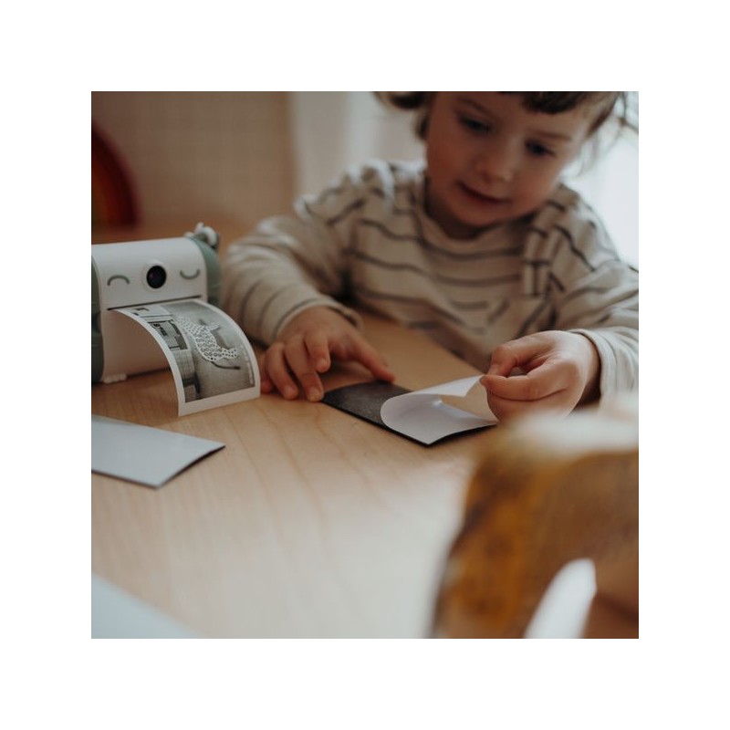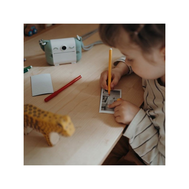 Grâce à sa technologie d’impression thermique, l’appareil garantit une impression facile et sans encre transformant chaque moment capturé en souvenir à partager. Vos enfants pourront partager leurs photos directement avec leurs copains et s’amuser ensemble. Avec les 3 aimants inclus vous pourrez encadrer leurs créations et les aimanter sur le frigo.