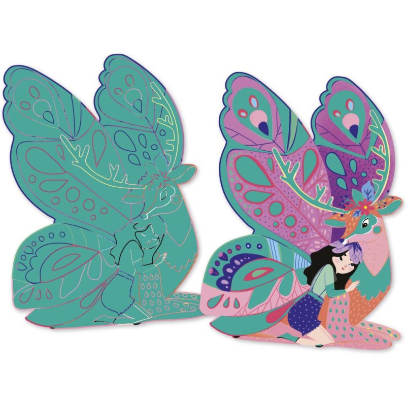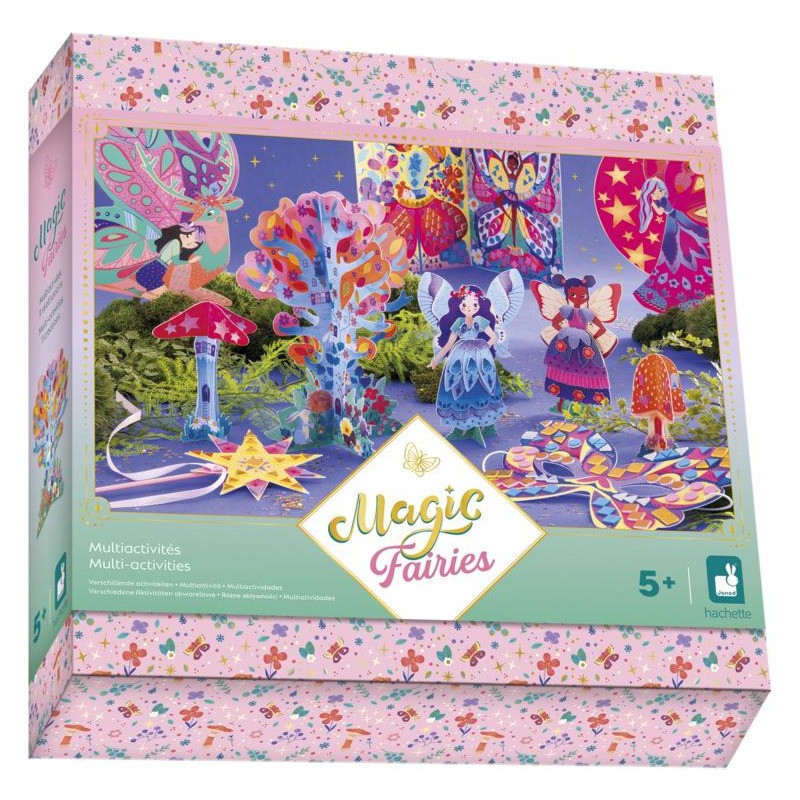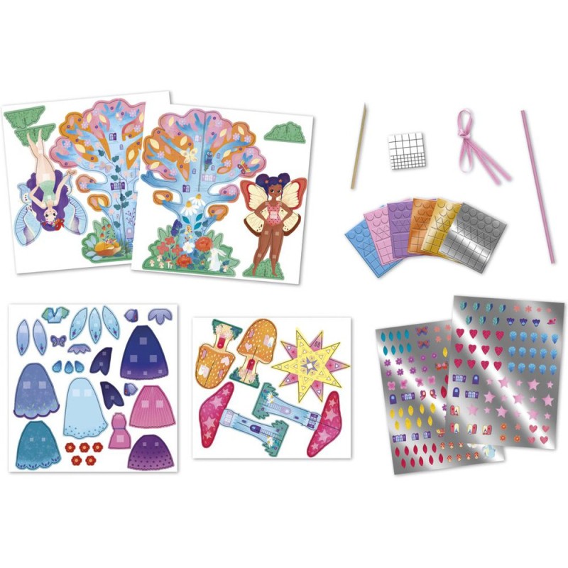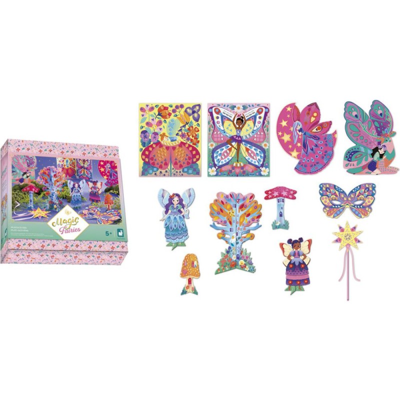 Le kit créatif complet pour être une véritable fée magique ! Ce coffret convient aux enfants à partir de 5 ans, et permet de réaliser 11 créations dans un style féérique. Des créations 3D, des fées à habiller, des tableaux à gratter ou à décorer, et bien d’autres surprises : soit tout le nécessaire pour apporter de la magie autour de soi ! Tout le contenu de ce loisir créatif est livré dans un coffret robuste et joliment imprimé. Avec sa fermeture magnétique, il est super pratique à ranger et facile à utiliser. Il contient : 3 planches prédécoupées illustrées, 1 feuille de papier prédécoupée illustrée, 2 tableaux à gratter, 2 tableaux à décorer, 1 masque, 1 baguette magique, 6 planches de mosaïques en mousse avec des effets de dorure, 2 planches de stickers métallisés, 1 élastique, 1 ruban satin, 1 planche de mousse autocollante double-face, et 1 livret avec tous les modèles et instructions. Pas à pas, les enfants décorent ainsi des champignons et un arbre en 3D de stickers, habillent de robes en papier deux fées sur leur socle, grattent deux tableaux silhouettés, décorent deux tableaux de mosaïques et stickers, et personnalisent leur masque et leur baguette magique pour être fins prêts ! Toutes les créations proposées dans ce coffret multi-activités permettent de développer la dextérité, la patience, mais surtout la créativité des enfants ! Grâce au large choix de loisirs créatifs à disposition, les enfants peuvent prendre part à l’activité à plusieurs et choisir de réaliser ce qui leur plaît le plus ! Au total, pour finaliser l’entièreté des activités créatives, il faudra compter 2 heures. Découvrez l'univers de la collection "Magic Fairies", des kits de loisirs créatifs et d’ateliers déco pour enfant sur le thème des fées, dans un style doux et floral. Pour des après-midis créatifs qui font rêver !