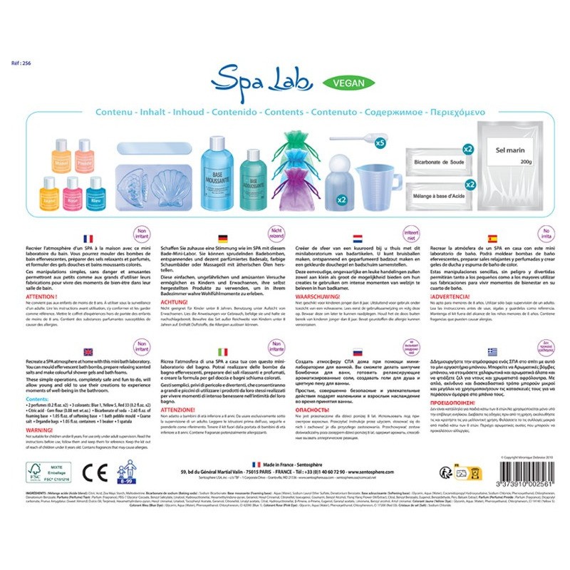 Avec les nombreuses matières premières de ce coffret, petits et grands pourront créer de manière ludique des produits cosmétiques dignes d’un Spa :
