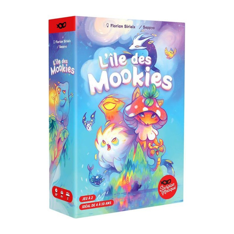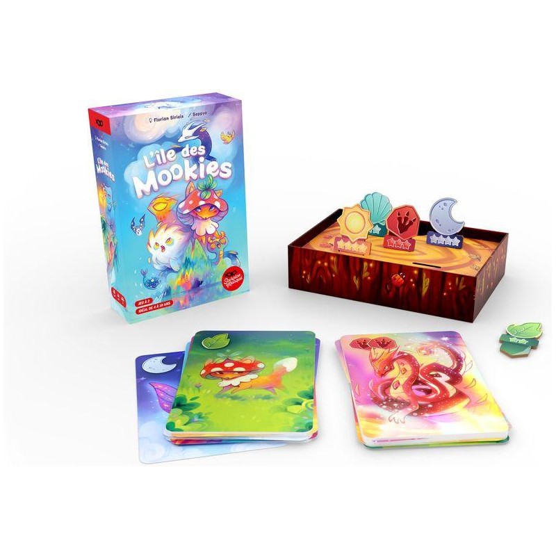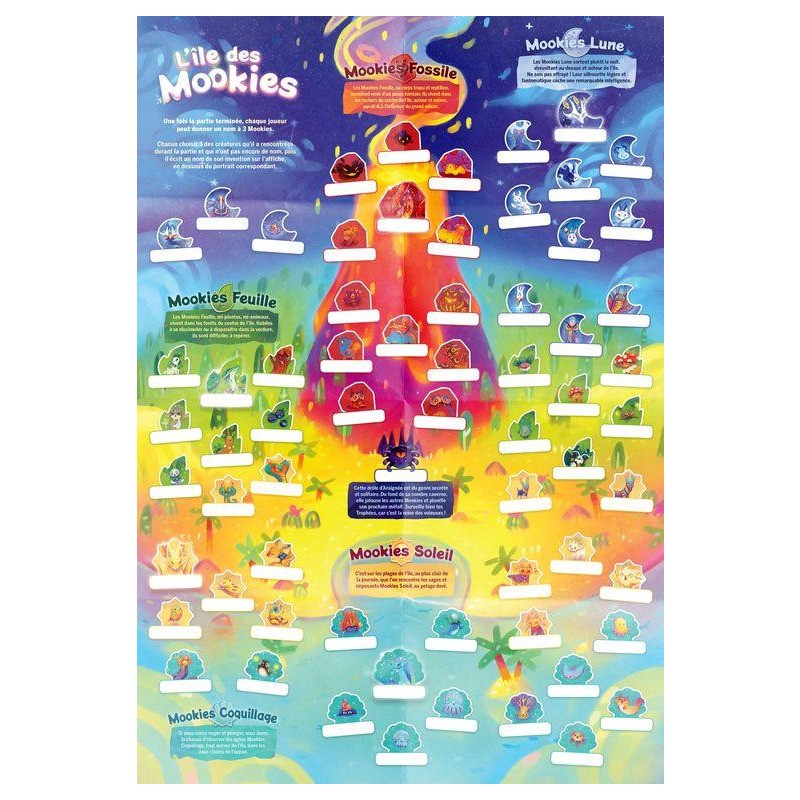 Sur une île bien cachée, vivent d'adorables créatures : les Mookies ! Collectionne les pour gagner des trophées, mais attention à cette drôle d'araignée. Utilise ton affiche pour nommer tous les Mookies et soit le premier à obtenir les cartes brillantes des Mookies Légendaires ! Idéal de 4 à 10 ans.