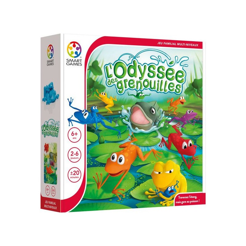 L'odyssée des grenouilles est un jeu de société familial accessible dès 6 ans dans lequel les joueurs devront être les plus rapides à faire traverser l'étang à leur famille de grenouilles. Les grenouilles se déplacent en sautant sur un nénuphar adjacent ou par dessus une autre grenouille pour aller plus vite.