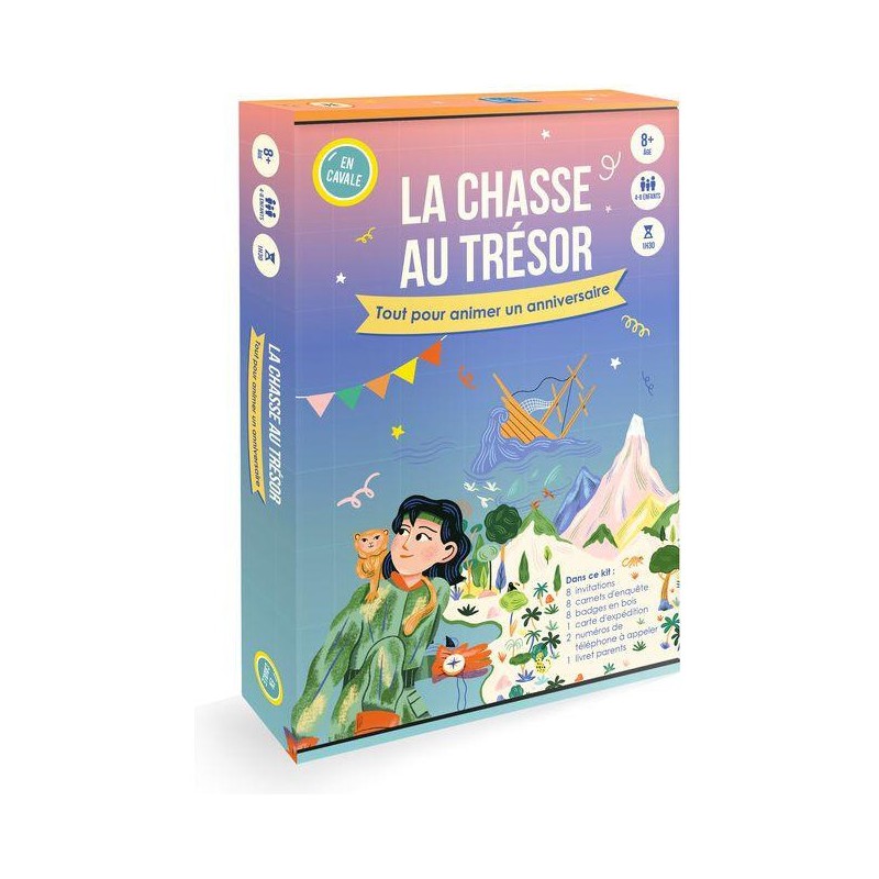 Une chasse au trésor clé en main, prête en 15 min, pour animer une fête d’anniversaire pour 4 à 8 enfants. Les enfants mènent ensemble une grande enquête : ils résolvent des énigmes, cherchent des indices cachés, écoutent des messages audio et relèvent des défis rigolos et fédérateurs.