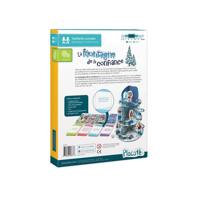 La Montagne de la Confiance est un jeu de parcours passionnant conçu pour aider les à développer leur estime de soi. Les joueurs se lancent dans une aventure au cœur de la montagne pour rejoindre Kili le Yéti. Ils devront répondre à des cartes-questions spécialement conçues pour explorer les différentes composantes de l'estime de soi. L’avis de la Blackrock Family : La Montagne de la Confiance est un jeu éducatif conçu spécialement pour les jeunes âgés de 7 à 11 ans. Il vise à développer leur estime de soi en les amenant à réfléchir sur différentes composantes de celle-ci, tout en établissant un parallèle avec le vécu du yéti, personnage central du jeu.