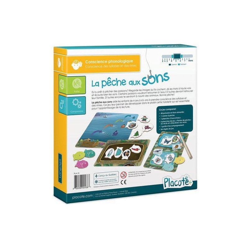 La pêche aux sons aide les enfants de 4 ans à 6½ ans à prendre conscience des syllabes et des rimes. Ce jeu leur permet de développer dans le plaisir cette habileté qui est essentielle pour l’apprentissage de la lecture.