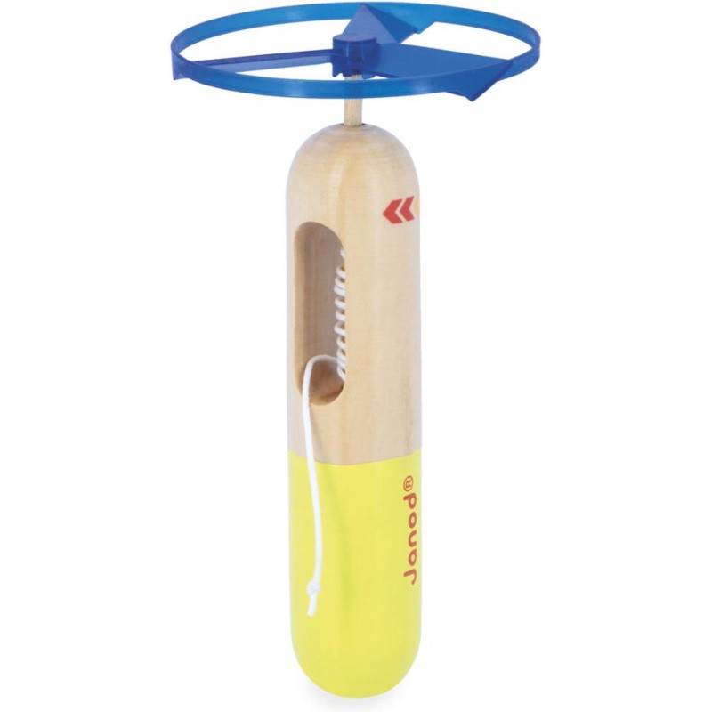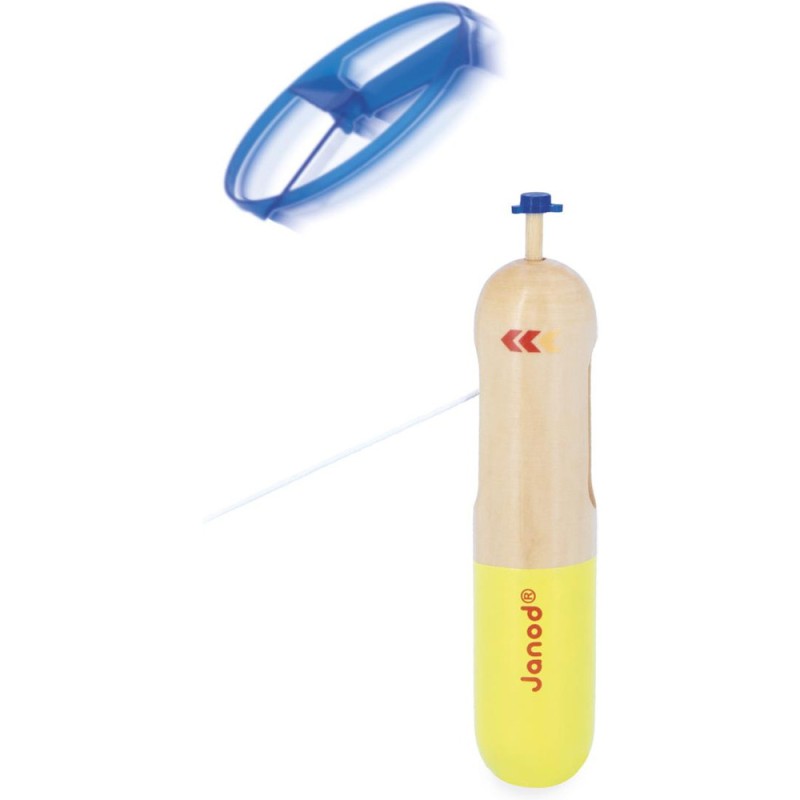 On s’envole ! Avec ce lanceur en bois, les enfants se surprennent et laissent place à la découverte, dès 5 ans. Pour jouer, c’est très simple : on place l’hélice bleue sur le support, puis on tire sur la ficelle. Un mécanisme simple, mais magique, qui propulse l’hélice dans les airs pour inviter à l’exploration !