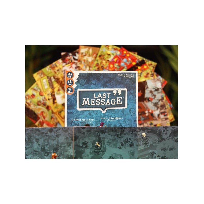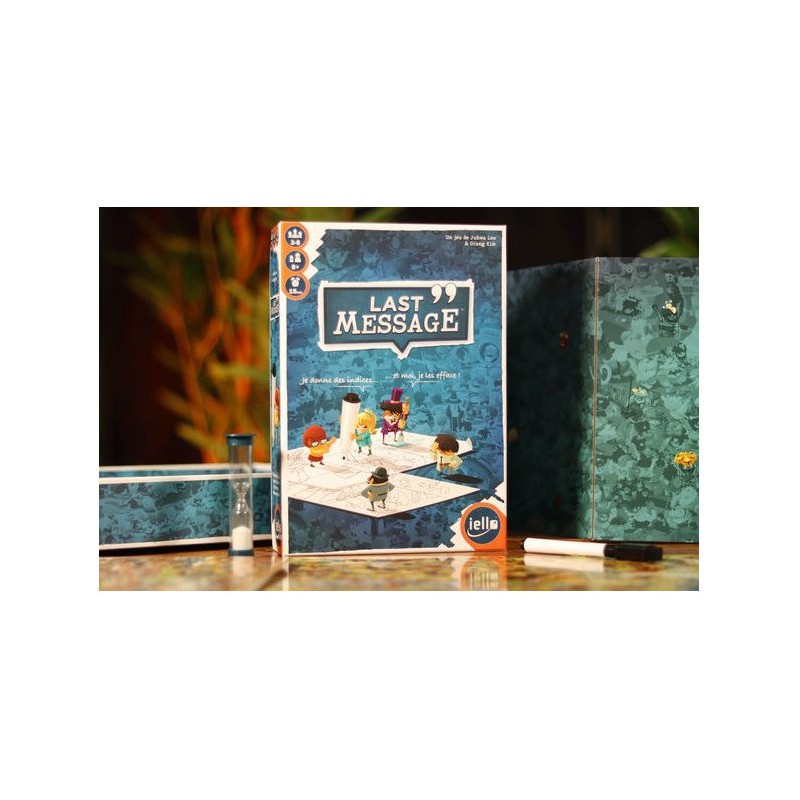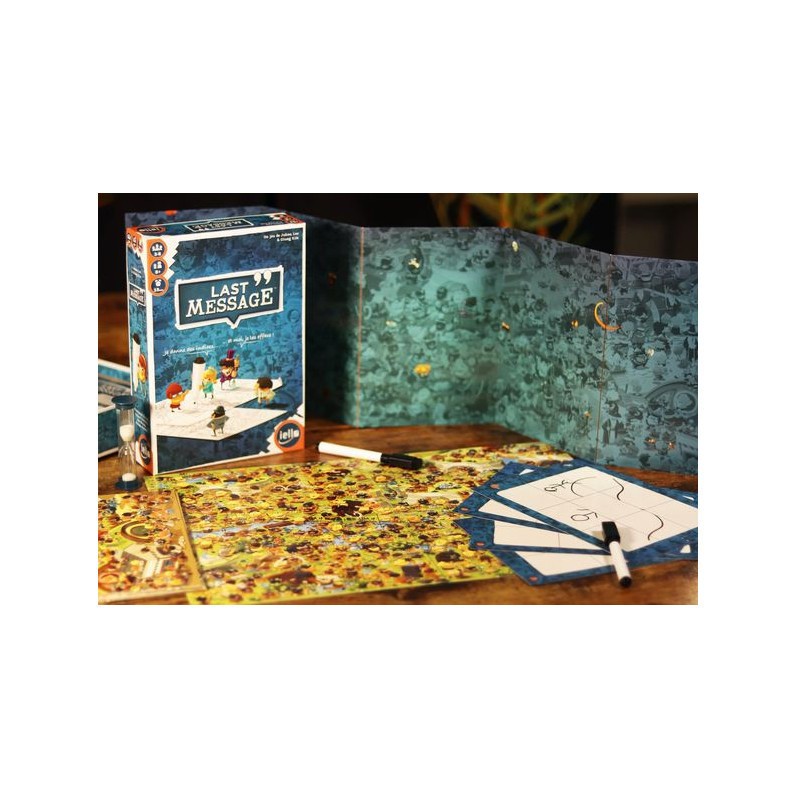 Dans Last Message, de 3 à 8 joueurs se divisent en trois rôles. Une victime. Un coupable. Des enquêteurs. Le crime a eu lieu dans la foule : identifier le coupable sera donc particulièrement complexe. Mais heureusement, la victime peut encore transmettre des indices aux enquêteurs quant à l’identité du coupable. Feutre effaçable en main, elle peut écrire ou dessiner des informations permettant de l’identifier sur une ardoise découpée en 9 cases. Attention : la victime ne dispose que de 30 secondes pour composer son message. L’ardoise est ensuite transmise… au coupable.