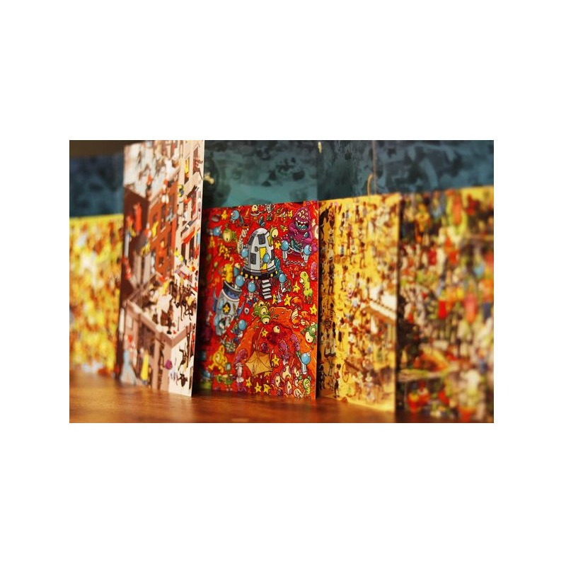 Chaque illustrateur a parfaitement su créer des univers très distincts, tant par le thème que le style, et c’est un véritable bonheur que de se perdre davantage à chaque partie au coeur de ces scènes ultra denses.