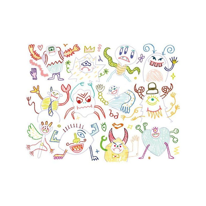 Contenu : 1 Trouillomètre, 5 dés spéciaux, 1 bloc de 50 feuilles (100 dessins), 4 tuiles joueur, 1 jeton premier joueur, 1 plateau de jetons, 18 jetons Peur, 10 jetons Décor, 5 caryons