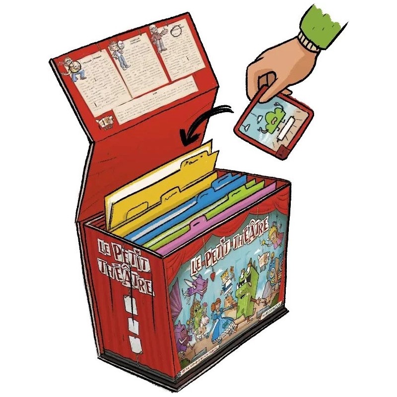 Le Petit Théâtre est un jeu coopératif où vous devrez collaborer pour mettre en scène une pièce de théâtre inédite. En utilisant des cartes Personnage et Verbe, vous allez former des phrases qui permettront aux comédiens et comédiennes d’accomplir des actions sur la scène.
