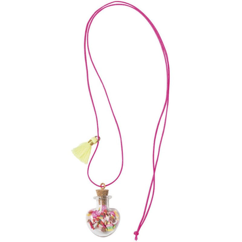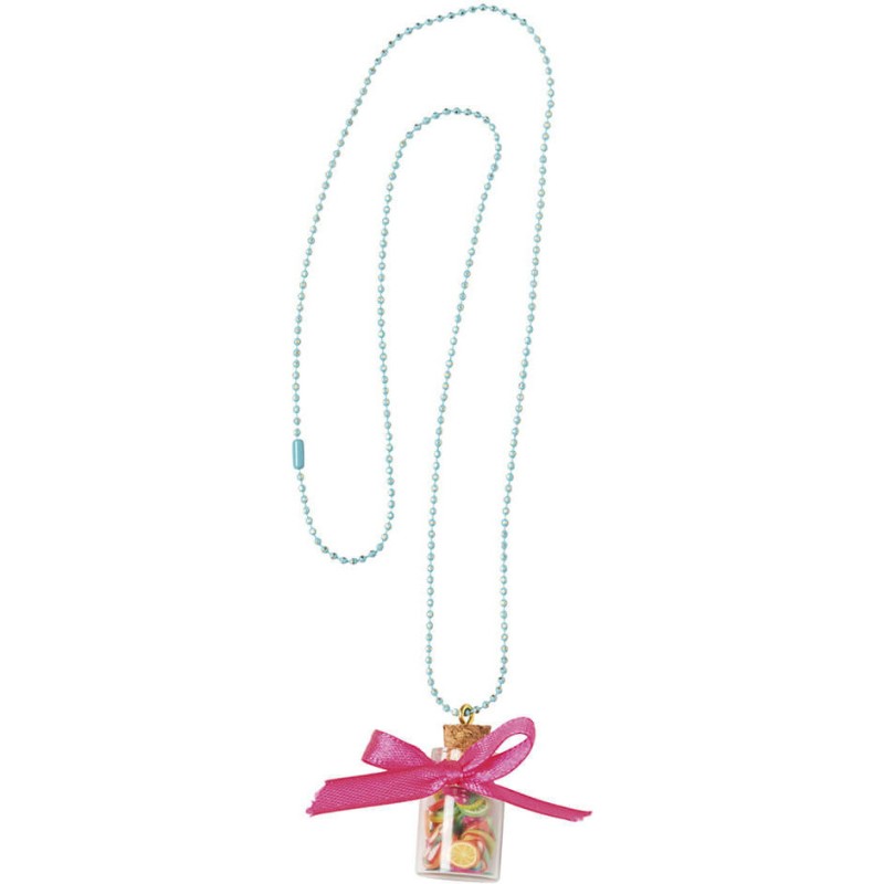 Une farandole de petits bonbons pour créer des bijoux originaux et gourmands ! Ce kit créatif permet de réaliser 2 sautoirs avec des petites fioles en guise de pendentifs qu'il faut remplir de mini friandises ! On retrouve 12 modèles différents de fruits et pâtisseries disposés dans une roue très pratique pour ne pas les mélanger. Une pince est également fournie afin de pouvoir récupérer et déposer les canes minutieusement dans les fioles. Chaque étape est détaillée en photo dans un livret pas à pas. Cette activité est très facile à réaliser et permet de développer la motricité fine et la créativité. Il faudra environ 15 minutes aux enfants pour réaliser un bijou. Idéal pour les enfants à partir de 7 ans.