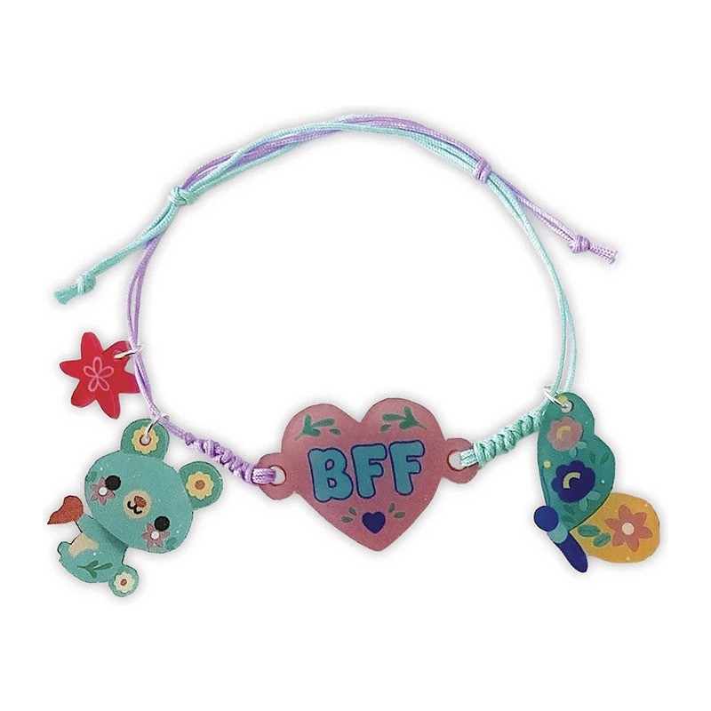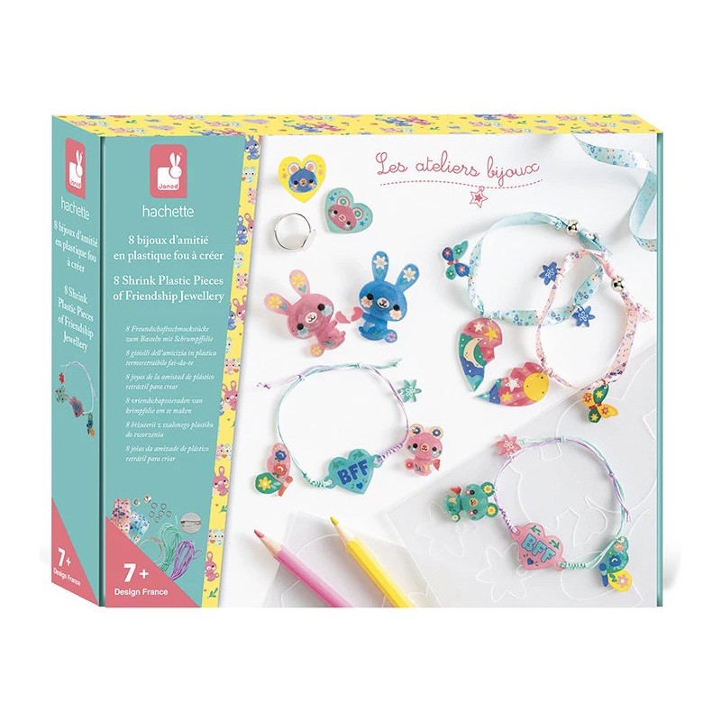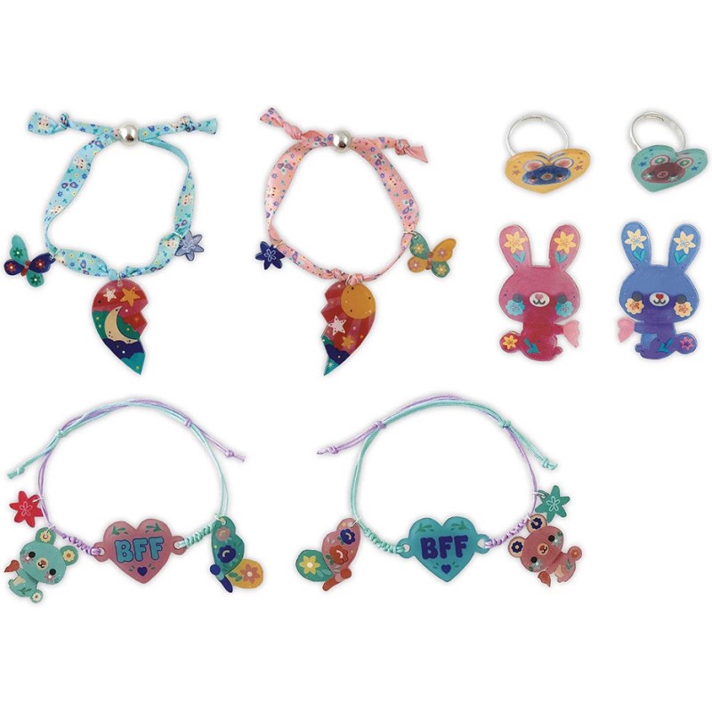 Une déclaration d'amitié en prévision ? Voici le kit qu'il vous faut ! Ce coffret créatif invite les enfants à réaliser 8 bijoux d’amitié (4 paires) dès 7 ans. Le principe est simple : créer deux bijoux assortis pour les partager avec un proche, en signe d’amitié. Bagues, bracelets, broches … Une grande variété de créations est disponible, pour se faire plaisir et faire plaisir autour de soi !
