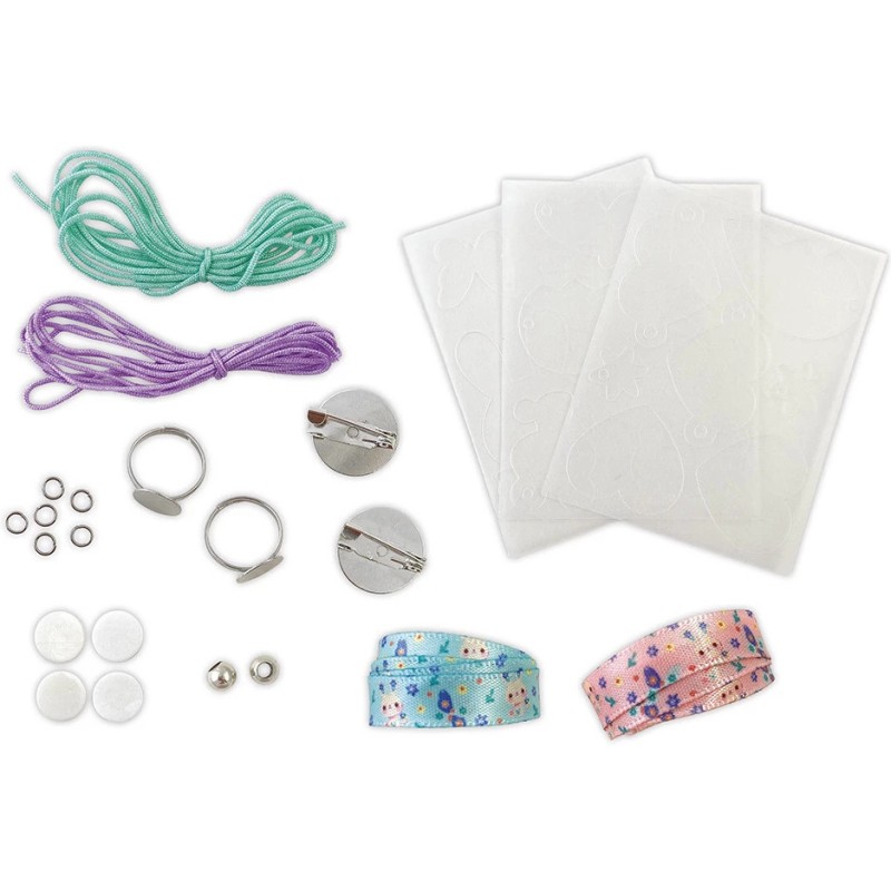 Un livret avec modèles et instructions est inclus pour guider les enfants dans l’activité. Pour réaliser ces créations, il suffit pour la plupart de colorier les formes prédécoupées en plastique fou, les passer au four à l'aide d'un adulte et d'admirer la transformation ! Les breloques se rétrécissent et deviennent solides, prêtes à être assemblées pour des créations uniques.