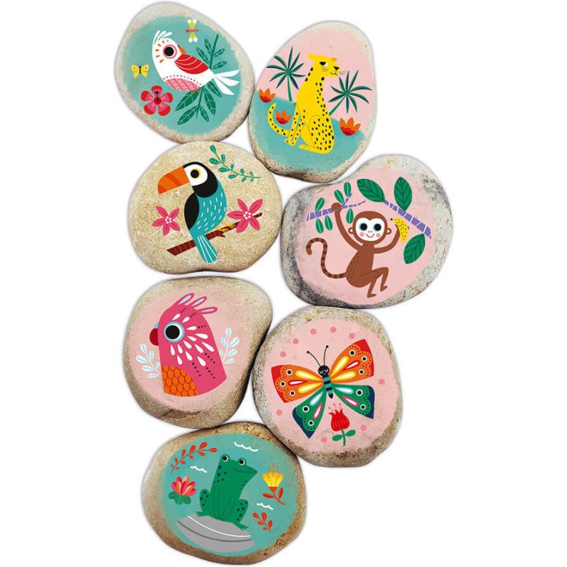 Les galets sont utilisés pour décorer. Commençons ! Ce kit de création simplifié est destiné aux enfants dès l'âge de 6 ans. Ce lot comprend 7 galets véritables que vous pouvez décorer avec de la peinture ou des transferts. Pour voir le motif imprimé sur le galet, peignez-le et placez le transfert sur le dessus. Les illustrations des animaux sont très délicates et les rendus sont toujours magnifiques ! Les galets mesurent environ 4 x 6 x 2 cm. Ce passe-temps créatif est idéal pour la motricité fine. Ce kit comprend 7 galets et 1 planche de transfert, 1 bâton en bois, 2 pots de peinture, 1 brosse à dents, 1 livret et 1 livre.