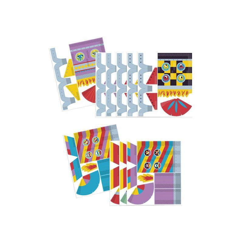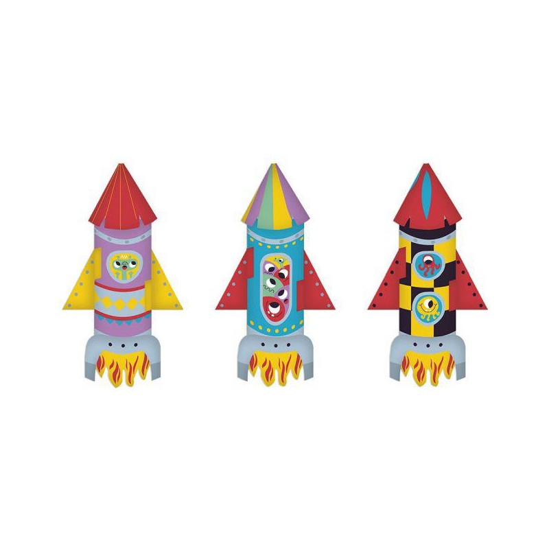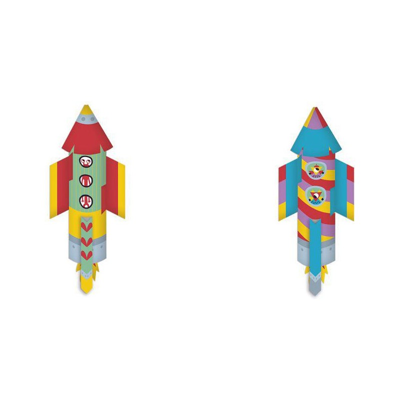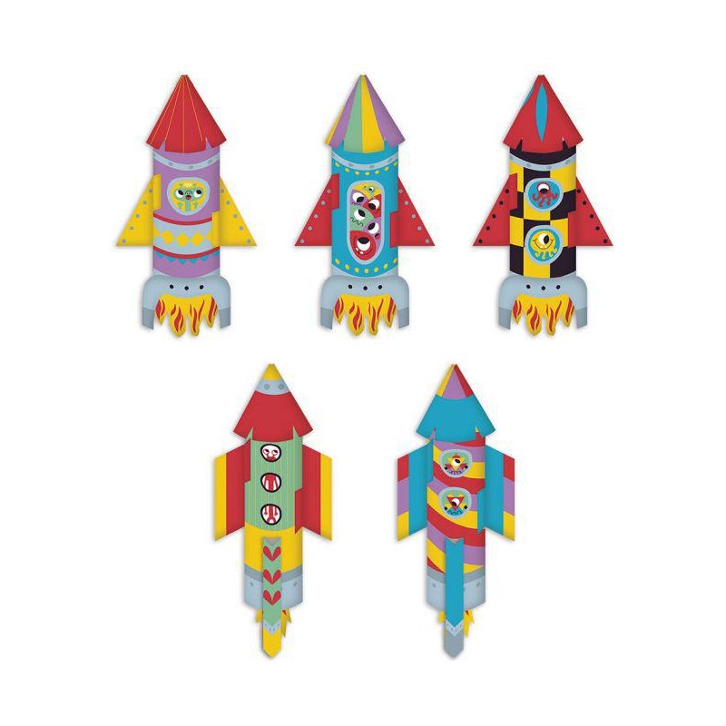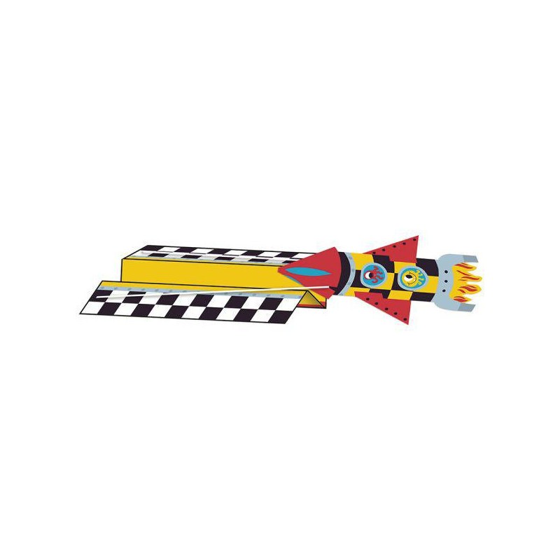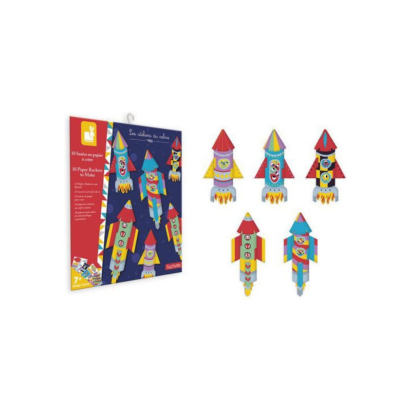 Vers l'infini et au-delà ! Voici une activité créative tout à fait complète qui permet aussi de jouer avec sa propre création ! Dès 7 ans, proposez à vos enfants de s'amuser autour d'une activité manuelle de la gamme Ateliers de Calme, qui leur permettra à la fois de donner vie à 10 fusées en papier mais également de les faire decoller pour de vrai grâce au lanceur fourni. Les engins spaciaux sont très colorés et avec des illustrations très rigolotes peuplées d'aliens et de créatures étranges. Allez, on suit les instructions, on plie et on apprend à réaliser les 2 modèles de fusées possible, la fusée avec ailerons triangulaires (11 x 22 cm) et la fusée avec réacteurs (9 x 23,5 cm). Il faudra environ 20 mn pour réaliser une fusée. Cette activité créative développe la motricité fine mais également l'imaginaire des enfants ayant la tête dans les étoiles !