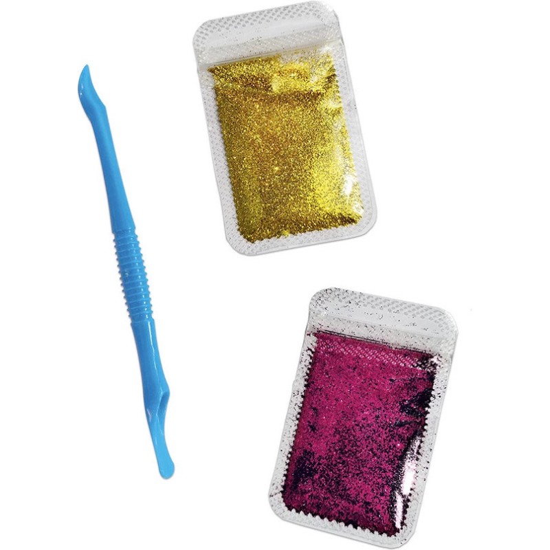 L'enfant se muni de l'outil et utilise la pointe pour décoller le papier qui protège les zones à décorer. Une fois les surfaces prêtes, la magie opère : appliquez les paillettes et contemplez un chef-d’œuvre étincelant ! La pochette contient : 3 tableaux de 21 x 25 cm, 2 sachets de paillettes (argent et violet), 1 outil en plastique avec 2 embouts différents et 1 livret explicatif.