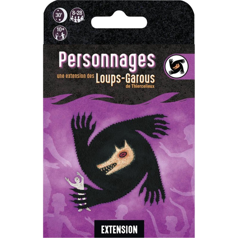 Chaque nuit, de cruels loups-garous éliminent un villageois. Le lendemain, les camarades de la victime se vengent en exterminant un monstre présumé. Pour l’emporter, éliminez tous les joueurs du clan adverse ! L’extension Personnages contient 16 nouveaux personnages qui bouleversent la manière de jouer. Du « Grand Méchant Loup » qui mange deux villageois par nuit au « Renard » qui piste les loups-garous, ces nouveaux personnages vont changer la donne à Thiercelieux !