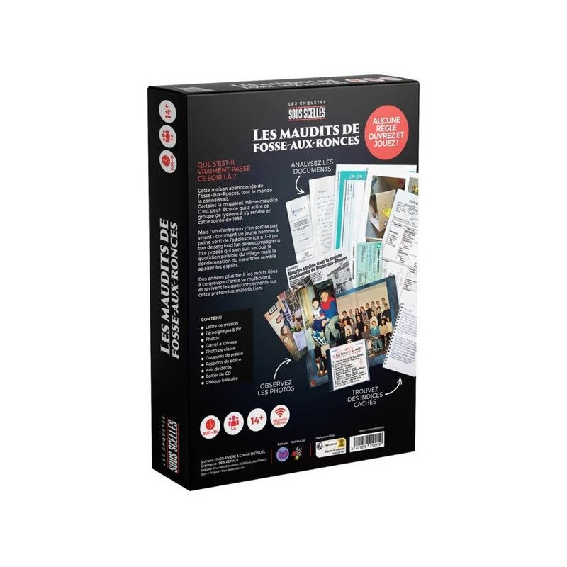 Vous êtes contactés par l’une des filles présente ce soir-là qui s’inquiète de voir ses anciens camarades disparaître. Pour en savoir plus, vous avez accès à toutes les pièces du dossier d’enquête et au parcours des six amis. A vous d’étudier les documents et en savoir plus sur l’histoire de cette maison abandonnée pour faire enfin la lumière sur la malédiction.