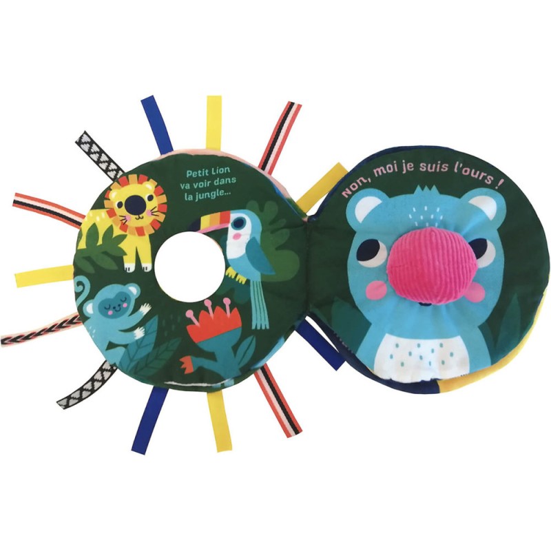 Joue sur l’affect (perso animal) sur le rire (pouêt en appui sur le nez)et sur la motricité fine (appui sur le nez). Un drôle de livre-tête originalun objet 2 en 1 : livre et jouet d’éveil sonore.