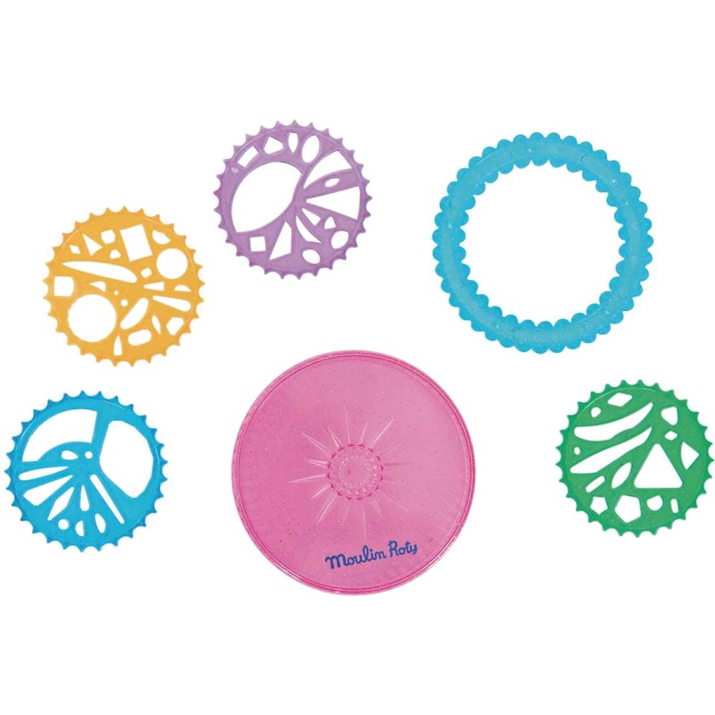 Boîte comprenant cinq cercles plastiques de différentes formes, tailles et couleurs. Pour dessiner toutes sortes de spirales : emboîter un des éléments plastiques dans le plus grand cercle qui sert de socle et faire glisser le crayon àl'intérieur, la magie opère !...