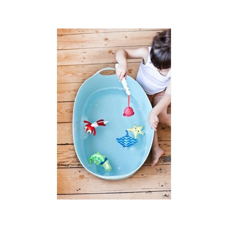 Jeu de pêche à la ligne pour le bain Alice de la marque Lilliputiens. Jeu de pêche magnétique pour les enfants à partir de 1 an. Avec sa canne à pêche aimantée, bébé s'amuse à attraper les personnages rigolos, des créatures marines comme le crocodile Anatole, mais aussi la malicieuse Alice la renarde. Ce jeu d'éveil développe la motricité fine de l'enfant. Le plus : les éléments du jeu sèchent vite, et se lavent en machine à 30°. Dimensions de la canne à pêche: 18 cm.