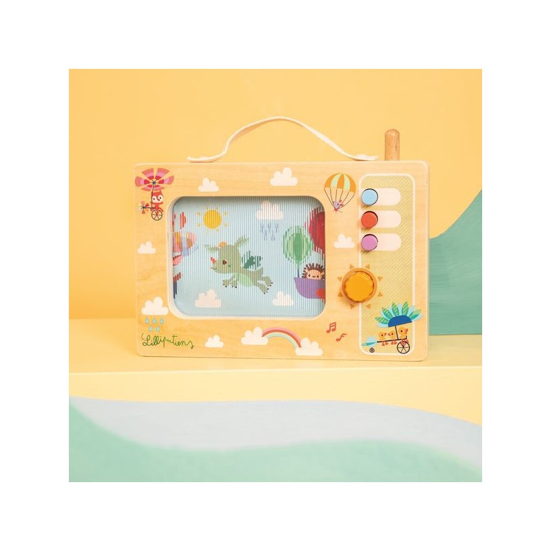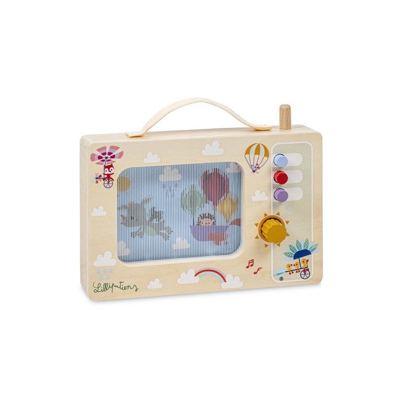 Ils s’envolent ! Cette boîte à musique animée en bois est idéale pour stimuler la vue et favoriser l'éveil musical des tout-petits, dès l'âge de 10 mois. Un petit tour de bouton, et voilà que la joyeuse troupe Lilliputiens prend son envol !