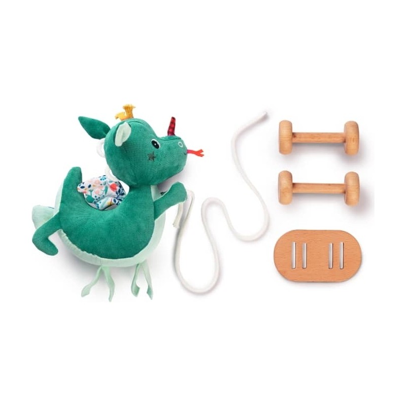 Êtes-vous assez courageux pour vous promener seul avec un vrai dragon ? Une peluche à laquelle vous pouvez retirer les roues grâce à du velcro. Joe a un hochet dans la tête du personnage ce qui fait de lui un véritable jouet d'éveil.
