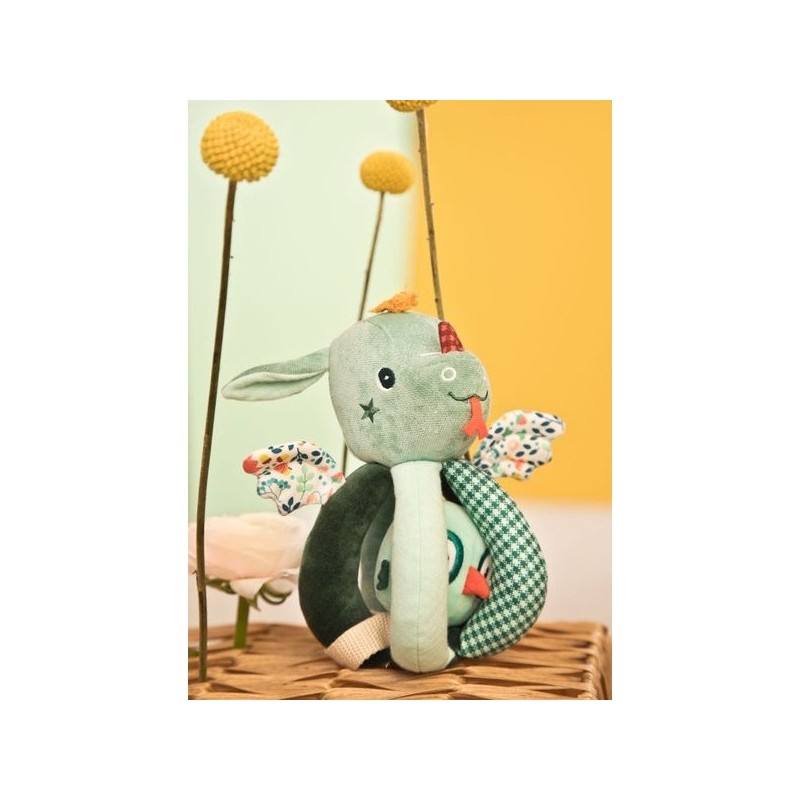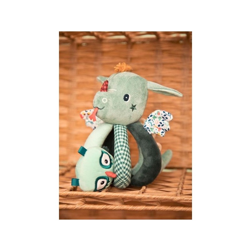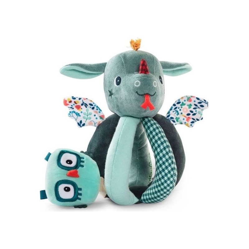 Offrez à votre bébé le hochet Joe le Dragon avec son petit ami le Hibou. Un hochet à poignées de Lilliputiens original, que les petites mains saisissent facilement. Joe le dragon cache un petit hibou.